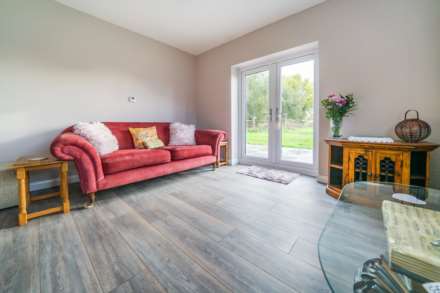 A light and spacious West facing sun room enjoying a triple aspect with the addition of a double glazed roof and under floor heating, French doors to the garden.